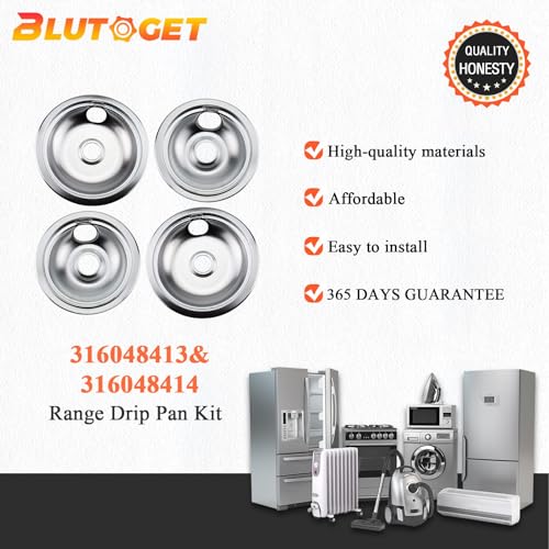 316048413 and 316048414 Chrome Stove Burner Drip Pans Replacement Compatible with Frigidaire Whirlpool Electric Range Include 2 x 6 in, 2 x 8 in