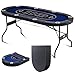 VEVOR 8 Player Foldable Poker Table, Blackjack Texas Holdem Poker Table with Padded Rails and Stainless Steel Cup Holders, Portable Folding Card Board Game Table, 72" Oval Casino Leisure Table, Blue