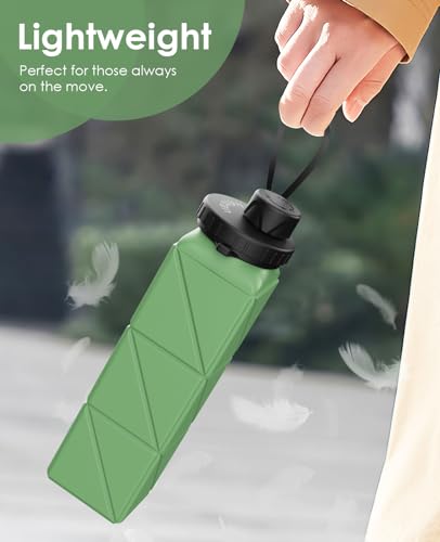 Infitran Collapsible Water Bottles, BPA Free Leak-Proof Silicone Foldable Water Bottle Cup 20.6oz, Durable Lightweight Bottle for Gym Travel Camping Hiking Running Sport,Green