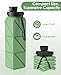 - Small Folding Size, Large Expansive Capacity: This collapsible water bottle is designed to save space by folding or rolling up when not in use, making it ideal for travel, hiking, office, home, gym, sports and so on. Its folded size is 2.9in(Height)*2.6in(Width) and capacity is 610ML., Never Miss a Sip: Tired of carrying bulky water bottles? Our lightweight and compact collapsible water bottle is your brilliant choice. This versatile and reusable companion attaches effortlessly to your backpack or gym bag, keeping hydration within reach. It even fits neatly in your pocket, purse, or pack—hydration has never been this hassle-free!, BPA-Free Healthy Material: Crafted from premium BPA-Free and Food-Grade silicone, this resuable water bottle elevate hydration experience. The soft, sturdy material can endure extreme temperatures(-50℃-200℃), making it easy to clean and perfect for carrying ice or lemon., Leak-Proof and Easy to Clean: Equipped with leak-proof construction with a tight-fitting cover, this silicone reusable water bottle efficiently prevents spills and leaks. Additionally, the detachable bottle mouth and wide neck design make it easy to clean, ensuring a healthy drinking experience., Vibrant and Stylish Colors: Choose from a variety of eye-catching and stylish colors that not only make a fashion statement but also bring flair to your hydration routine.