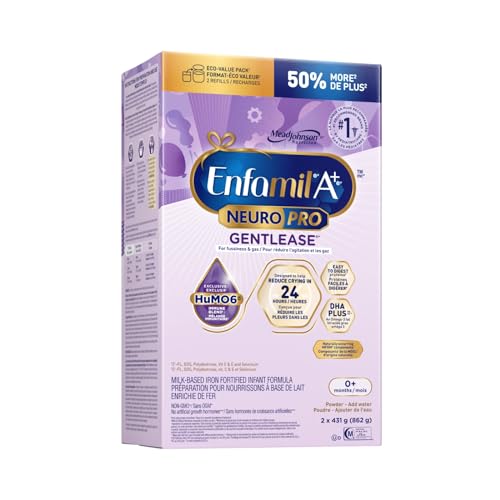 - Help calm your baby’s tummy in just 24 hours with Enfamil A+ NeuroPro Gentlease# ., A leading formula with easy-to-digest proteins //, An expert recommended level of brain-building DHA*, Our exclusive fibre blend (in powder format only) shown to promote soft stools,§, #1 Pediatrician recommended infant formula**, *DHA supports normal physical brain development, Blend of GOS, Polydextrose in powder format only, Compared to Enfamil without fibre blend, §Ziegler et al. study, 2007, #Berseth et al. study, 2009, IQVIA report, 2022 data // Similar to all infant formulas, **IQVIA report, 2022 data