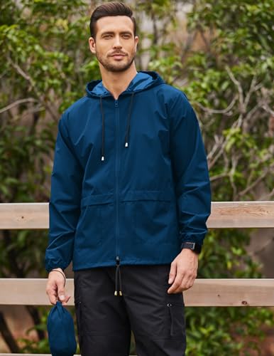 COOFANDY Mens Waterproof Raincoat Lightweight Rain Jacket Hooded Windbreaker