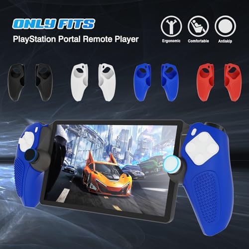 DLseego Protective Case Cover for Playstation Portal Remote Player PS5 Console, Silicone Soft Grip Handle Shell Protector with 4PCS Thumb Grips Caps Accessories Kit - Blue