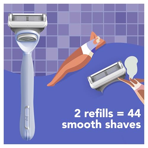 - say hi to smooth skin: the joy razor has 5 cutting blades, from the makers of Gillette, for a comfortable, close shave and silky-smooth skin, protect your skin: the joy cartridge has a lubrastrip for glide while protecting skin from shave irritation, features a non-slip grip handle in neon pink!, kind to the planet & you: our razor is cruelty-free and dermatologist confirmed safe for all skin types, pivots to catch pesky hairs: our razor head moves up and down to shave any hair, anywhere