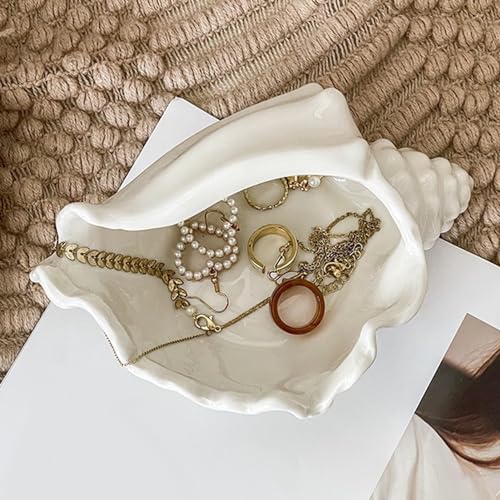 - Delicate Treatment: The conch shell jewelry dish is made of ceramic material, providing a comfortable feel and exquisite details. The small conch shape jewelry tray is suitable for multiple scenarios such as living rooms and offices. Seashell decorative bowls for home decor will add modern coastal decor to any space and bring the serenity of the sea into your home, Multi Functional Use: The white ceramic conch shell decorative seashell storage bowl for table can be used to place jewelry, small items, etc., Put on your bedside table, your dresser, your bathroom, or your kitchen counter wherever you take off your jewelry, Seashell Table Decor: On top of being aesthetically decorative, you can use it to hold your coins, keys, even a great INDOOR planter for faux plants, BUT NOT for real plants, and many more as the possibilities are vast as the ocean. Large seashell bowl decor brings a stunning coastal boho decor to the bathroom infuses the room with elegance and a fresh, tropical feel, Versatile Seashell Dish Tray: Ceramic bowl decor can be used as a summer table decor, coastal tablescape centerpiece for a relaxing beach style living room. Decorative candy bowl adds a decorative touch to your patio pots and summer house decor as a tropical sea shell sculpture. On-trend decor for bohemian, Hamptons, coastal beach houses or nautical-themed rooms, Decorative Ceramic Bowls for Home Decor: This shell dish for jewelry makes a perfect gift idea for wife, daughter, mother or gift to your loved ones for Birthday, Mothers Day, Engagement, Valentines Day, Anniversary, Christmas or any special celebrations