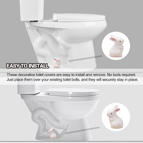 2 Pack Universal Toilet Bolt Caps,Rabbit Ceramic Cat Toilet Screw Cover Fun Bathroom Accessories and Toilet Caps for Toilet Bolt Covers Decorative (B-Rabbit)