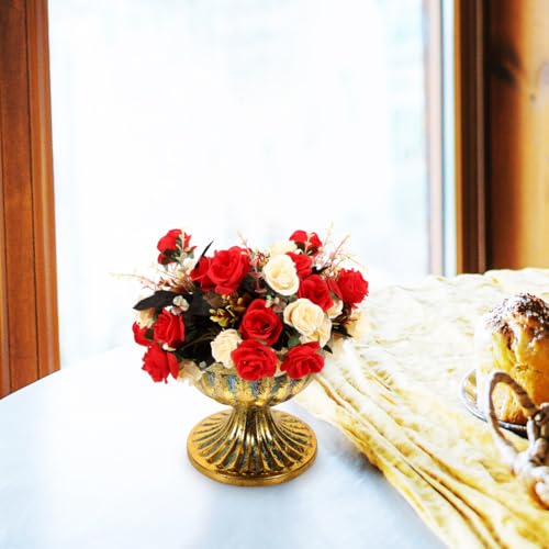 Decorative Metal Urn Vase for Wedding Centerpieces Vintage Gold Flower Holder for Home and Office Decoration Retro Tabletop Planter for Fresh Dried Flowers