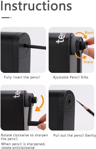 - 【Professional Art Pencil Sharpener】Still use the old manual pencil sharpener? Look at our helical blade manual pencil sharpener for artists which can sharpen 3000 times. Advantages: Fast, labor saving, lead not easy to break, large capacity shavings box and adjustable pencil nib., 【Long Point Pencil Sharpener】Designed for φ6-8.2mm sketching and drawing pencils, this manual pencil sharpener will give you a long point, ranging from 8mm-20mm. Thicker core, longer points. An inexpensive choice for artists! Please note that this model do not compatible with pastel pencils or any pastel buildup or very soft and brittle lead pencils. Please check your pencils compatibility before purchased. Thank you., 【Adjustable Pencil Nib with Sandpaper】The sharpness of the nib can adjustable by rotate the knob on the handle. If you want a NEEDLE SHARP point, use the black sandpaper embedded in the shavings box., 【Pencil Sharpener for Artist】This art pencil sharpener is your good partner. When you think of an elegant sketch set gift, you need to look at this. It really makes the painters feel comfortable. Buy it now for your 8mm art pencils!, 【Self-feed Pencil Sharpener】This artist pencil sharpener is super easy to operate, just insert the pencil into the holder and crank clockwise while holding the sharpener, the pencil starts to move inside the sharpener with each crank; when the resistance decreases crank it anticlockwise and the pencil starts to come out on its own! Do not sharpen any more when the pencil is done, or it will chew up your pencils!