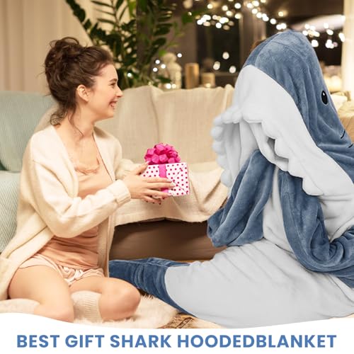 - 【Creative Shark Design】:The wearable shark blanket design is unique and presents a realistic shark shape,The distinct shark shape, realistic print and classic colors will help your get into character every time they wear it. Compared with ordinary wearable blankets, the wearable shark blanket can completely wrap your body,feel all-around warmth. It helps you get into shark role play every time you wear it.Have fun., 【Comfortable Flannel】:Shark blanket made from soft and comfortable flannel material,which has a certain thickness and texture. Super soft and comfortable, warm and durable, this shark onesie sleeping bag will keep you warm through every cold night., 【Shark Blanket Size Guide】:Our shark costume offers 4 size,(M)suitable for women and children with a height of 135-155cm/53.2-61in; (L)suitable for men and women with a height of 145-165cm/57.1-65in; (XL)suitable for adults or women with a height of 150-170cm/61-67in;(XXL)suitable for adults or women with a height of 160-190cm/63-74.8in;Please refer to our size chart for specific data.(Note: those who like loose or fatter choose one size up directly!!!!), 【Versatile Use】:Shark hoodie can be used as cosplay costumes,performances,indoor and outdoor blankets,Halloween costumes,loungewear, Christmas blankets and throws. It's perfect for camping,sleepovers, slumber parties,movies,party nights,and any occasion that calls for a little extra fun., 【Best Gift】:If you are thinking of sending your loved one a gift. Don't hesitate,shark blanket hoodie is the right choice for you. This cute shark blanket hoodie is the perfect gift for family, friends, and children, suitable for various holidays and occasions such as birthdays, christmas, thanksgiving, etc, bringing warmth and surprise to the recipient.