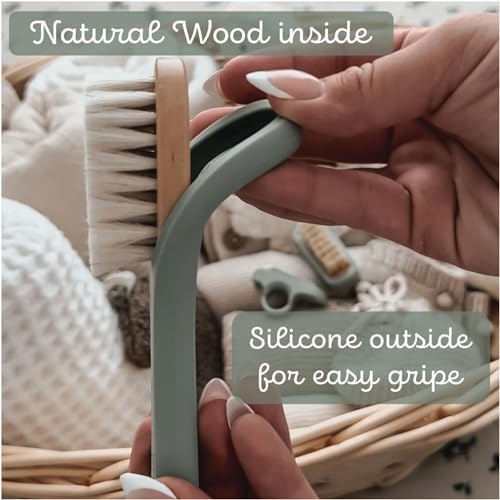 nouka Baby Care Kit Set | Ultra-soft natural Bristle Hair Brush, Nail Clippers & Nail Brush | Wood with nouka Baby Grooming Kit Set | Ultra-soft natural Bristle Hair Brush, Nail Clippers & Nail Brush | Wood with Silicone Sleeve | Shifting Sand