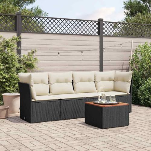 vidaXL Garden Sofa Set 5 Piece with Cushions, Outdoor Sofa Set for Patio Terrace Balcony, Corner Sofa, Modern Style, Black Poly Rattan
