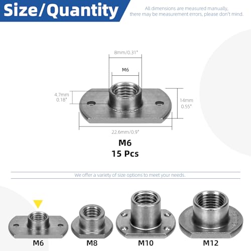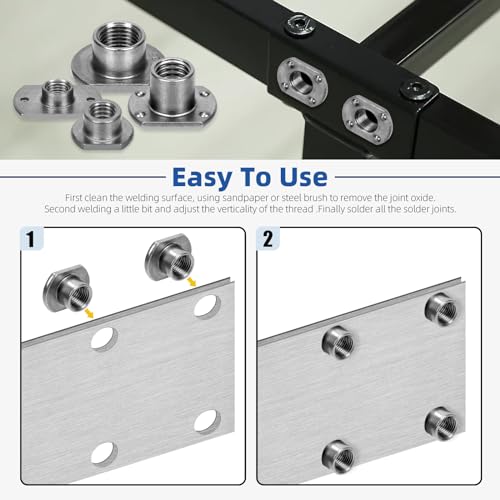 - ♛【What You Get】: We will provide you with 15pcs M6 T-shaped weld nuts in this kit. All of these weld nuts have a good weld ability and accuracy thread size, perfect for your repair work., ♛【Thickened Material】: These weld nuts are made of carbon steel, which has good processing performance and high toughness, corrosion resistance, heat resistance. So that it provides excellent durability and high strength., ♛【Smooth surface】: The surface is smooth and burr-free, with high-quality workmanship and durability, so that when using these weld nuts, you have no need to worry about hurting your hands burr-free., ♛【Easy to Installation】: These weld nuts are easy to use, you just clean the welding surface first, using sandpaper or steel brush to remove the joint oxide, then welding a little bit and adjust the verticality of the thread, finally solder all the solder joints. In this way, you can easily finish your repair or welding work., ♛【Wide Application】: The weld nuts can be directly into the slot holes, and this fastener nut is used for the machinery industry, home furniture repair, marine applications, equipment, metal shelves, household and commercial appliances, etc.