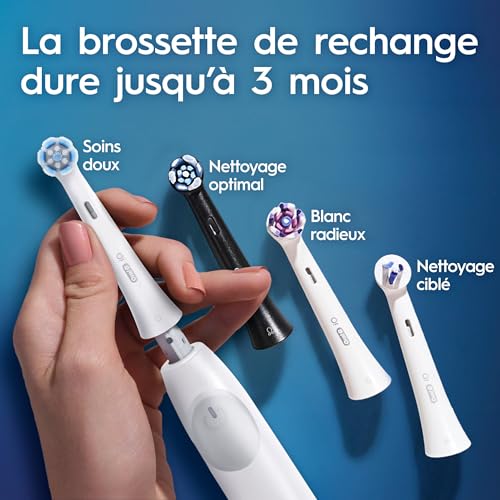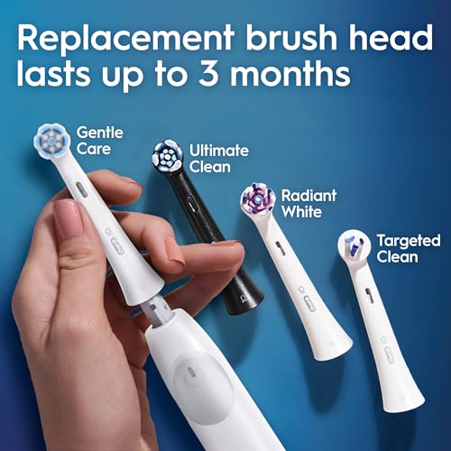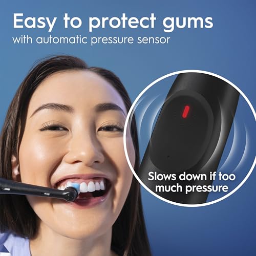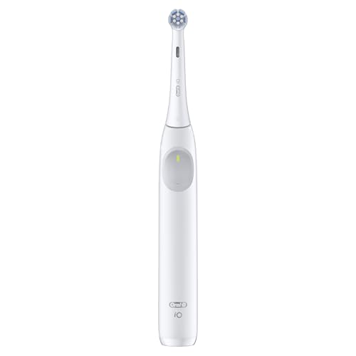 - REMOVES 100% MORE PLAQUE vs a regular manual toothbrush with Oral-B’s MOST ADVANCED TECHNOLOGY iO: TOUGH ON PLAQUE, GENTLE ON GUMS, DESIGNED FOR AN EASY SWITCH TO ELECTRIC BRUSHES with a 1 touch button, quiet sound, long-lasting battery, and it starts on the super-sensitive cleaning setting., PROTECT YOUR GUMS with the AUTOMATIC GUM PRESSURE SENSOR that slows down speed and signals red when you brush too hard, 3 CLEANING SETTINGS to EASILY CHOOSE YOUR PERFECT CLEAN: super-sensitive, gentle, daily clean, BRUSH FOR DENTIST-RECOMMENDED TIME with 2-MIN BRUSH TIMER that alerts you every 30 seconds to change your brushing zone, FITS ALL ORAL-B iO REPLACEMENT BRUSH HEADS: Ultimate Clean, Gentle Care, Radiant White, Specialized Clean, LONG-LASTING BATTERY with a low-charge indicator, TRY ORAL-B ELECTRIC TOOTHBRUSHES CAREFREE: We offer a 30-DAY MONEY-BACK GUARANTEE