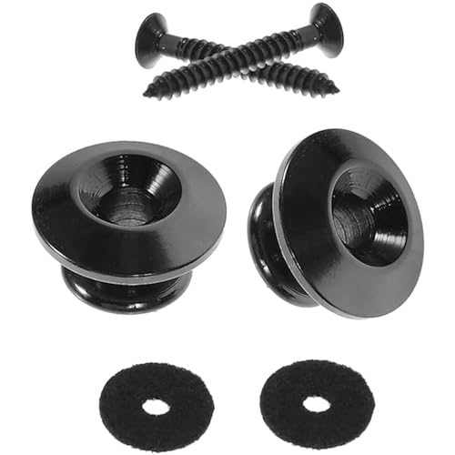 Yharnamite 2 Pcs Guitar Strap Buttons, Acoustic Guitar Strap Locks Pins End with Screws and Felt Pads, Guitar Straplock Peg for Acoustic Guitar, Electric Guitar, Bass, Ukulele (Black)