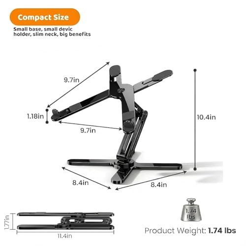 - ใ๐ฏ๐ฒ๐ฌยฐ ๐ฅ๐ผ๐๐ฎ๐๐ถ๐ผ๐ปใFeaturing a 360ยฐrotatable axis connecting with the base, Moallia rotating laptop stand for desk allows you to easily share your screen with someone sitting across the room or at another desk. It also works great for ideas sessions when collaborating with others over video chat or calls., ใ๐๐ฒ๐๐๐ฒ๐ฟ ๐๐ฟ๐ด๐ผ๐ป๐ผ๐บ๐ถ๐ฐ๐ใMoallia Computer stand easily lifts your laptop to a higher level. It elevates your laptop to your eye level to fix your posture and reduce your neck and back stiffness. Working in your most comfortable position can boost your productivity and creativity., ใ๐๐ผ๐น๐ฑ๐ฎ๐ฏ๐น๐ฒ & ๐ฃ๐ผ๐ฟ๐๐ฎ๐ฏ๐น๐ฒใMoallia adjustable laptop holder weighs 790 grams and can be fully folded into a small size of 11.4 inches * 1.7 inches. It is designed to be used anywhere. Just folding this laptop stand for desk, then you can carry it to coffee shops, your office, or wherever you go., ใ๐๐ฒ๐ฎ๐ ๐๐ถ๐๐๐ถ๐ฝ๐ฎ๐๐ถ๐ผ๐ปใThe Unique X-shape design provides good ventilation and airflow to prevent your laptop from overheating.In addition, its 100% aluminum alloy body also helps to diffuse heat to cool down your laptop. Keeping your laptop cool is the key to prolonging its service life., ใ๐ช๐ถ๐ฑ๐ฒ ๐๐ผ๐บ๐ฝ๐ฎ๐๐ถ๐ฏ๐ถ๐น๐ถ๐๐ใMoallia laptop stand for desk is well compatible with all laptops from 11 to 16-inch, such as MacBook 12 inch/ 13 inch, MacBook Air 13 inch, MacBook Pro 13 inch / 15inch/ 16 inch, Microsoft Surface, Dell, HP, Chromebook, and other devices. It is fully foldable and may be used as laptop standing desk accessories for office, podium pulpit stand, laptop desk riser, laptop desk stand, desktop stand, foldable computer desk, ergonomic stand.