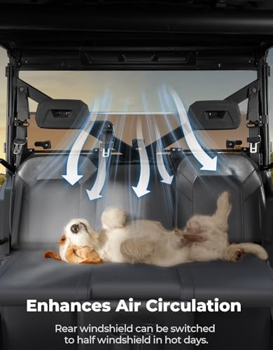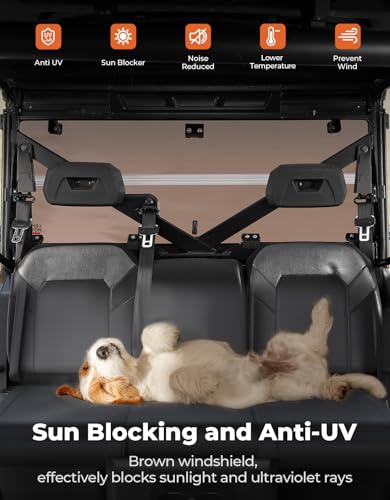 - Fitment: Compatible with Polaris Ranger XP 1000/ Crew 2017-2024; Ranger 1000/ Crew 2020-2024; Ranger XP 900/ Crew 2013-2019; Ranger Full Size 570/ CREW 2015; Ranger XP 570 2016; Compatible with Polaris PRO XD 4000G/2000G/2000G AWD 2020-2021; Compatible with Polaris Ranger XP Kinetic 2023, Seasonal Versatility: KEMIMOTO Dark Tint Hard Rear Folding Windshield designed to handle all weather conditions. Its foldable feature allows for easy switching between half and full coverage with a quick locking mechanism. As the rain begins to fall, you effortlessly twist the knobs at the corners, securing the windshield back into its full protective position. You can secure and lock the windshield in a folded position to enjoy airflow through the cabin, Durable Material: Made from 5mm polycarbonate plastic with an anti-scratch coating, ensuring impact resistance long-lasting durability, and resistance to scratches, Shockproof and Sealing: High-deflection Bulb Gasket guarantees a perfect seal, keeping out dust and debris while providing exceptional UV resistance and thermal stability — crucial for both sunny and rainy conditions, Easy Installation: Quick installation by simply rotating the corner knobs, allowing you to enjoy a comfortable and protected journey immediately