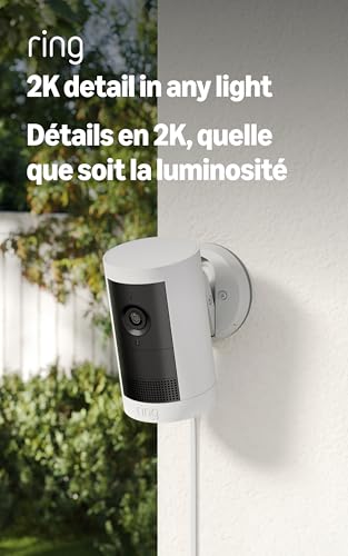 Introducing Ring Outdoor Cam Plus, Plug-In — Wide-Angle 2K Video with Ring Vision, Low-Light Sight for full-color night vision, Mount-anywhere versatility, White