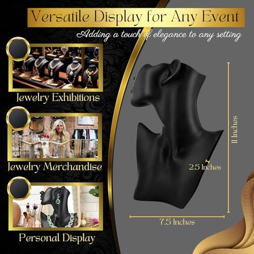 - Versatile Use: This black necklace display for selling and displaying necklaces, earrings, chains, and pendants adds a touch of elegance to any display for home, small businesses, boutiques, retail, and trade shows. NOTE: Jewelries & Accessories are not included., Resin Material: Our jewelry bust display is crafted from resin, which is durable and not easy to deform; this jewelry display mannequin stand offers stability and longevity, Elegant Design: Our necklace bust display has a smooth, black finish that adds a touch of elegance, enhancing the beauty of your jewelry and keeping it organized, Lightweight Design: This lightweight necklace mannequin stand emphasizes portability and ease of use, ensuring it can be easily transported from one place to another, Ideal for Various Occasions: This necklace and earring bust jewelry display suits storefront windows and collections. It also serves as a great photography prop or ornament
