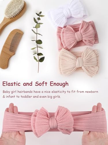 - Premium Material: Our newborn bow set is made of stretchy nylon, stretchy enough to adapt to your baby's changing head circumference and won't slip off easily. The soft and stretchy nylon baby head gives your baby a comfortable feeling. But please note that this hairband needs spot cleaning or hand washing., Adorable Design: Cute baby wearing cute bow headband equals double cuteness. Threaded texture and wide bands are easier to wear and hold their shape. Our baby headbands are handmade, delicate and safe., Stylish Bow Set: Our baby bow set comes in this year's most popular colors. Like a garden in springtime, this baby nylon headband offers up bright & cheerful colors for your baby. This hairband has a size of 5.5"/14cm in length and 3.1"/8cm in width, very stretchy for wearing., Great for All Occasions: Toddler hair bands are the perfect hair accessory for baby girls and baby boys. They are suitable to wear for family photos, birthday parties, christenings and baby showers. It is also suitable to wear when walking out in the woods and having a picnic. Even better for capturing moments for your child wearing our beautiful bow headpiece set., Perfect Baby Gift: Our soft headbands for babies are beautifully packaged and make the right gift for your baby. If you have a friend or family member who is expecting a baby or planning a family photo shoot, this would be the perfect gift.