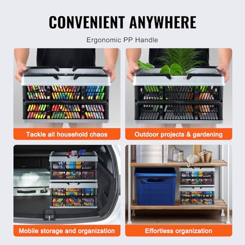 VEVOR Collapsible Shopping Basket, 3 Pack, 16L Plastic Foldable Storage Crate with Handle, Grocery Fruit Vegetable Shopping Basket Folding Storage Container for Supermarket Retail Shopping, Black