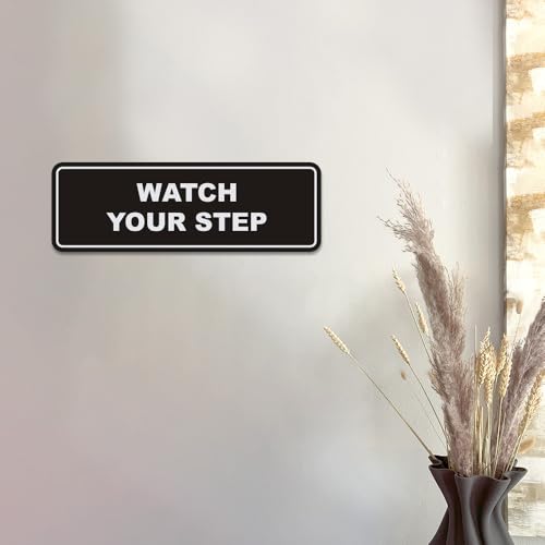 Signs ByLITA Standard Watch Your Step Wall or Door Sign -Health and Safety Signage | Durable Material and Easy Installation (Black/Silver) - Small (2 Pack)