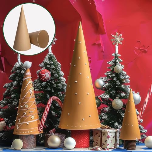 - What you get: You will receive 6/12/22 carefully crafted paper mache craft cones, which has sufficient quantities to meet your usage needs. Each cone is 9.8 ''/13.8''/5.8'' in height and 3.9"/5.2''/2.8'' in diameter at the bottom., Quality material: These cone sets are made of kraft paper, which has a certain thickness, hardness, and environmentally friendly. It will not be easily damaged in the process of using., Unlimited creativity: Our mache cones can be painted with pigment; or you can choose to wrap colored paper on the surface; or tie delicate ribbons and small objects. It will enhance the delicacy of the holiday decoration instantly, creating a unique decoration., Widely use: These paper cones add a happy atmosphere to your holiday, and also adorn your home with elaborate little decorations. Whether placed on the table or hanging from the Christmas tree, they will become a lightspot and show the warmth and romance of the festival., Warm times: Paper mache craft cones can be used for Christmas home decoration, school handicraft activities, party decoration. Adults can enjoying the fun of doing crafts and lefting warm memories.