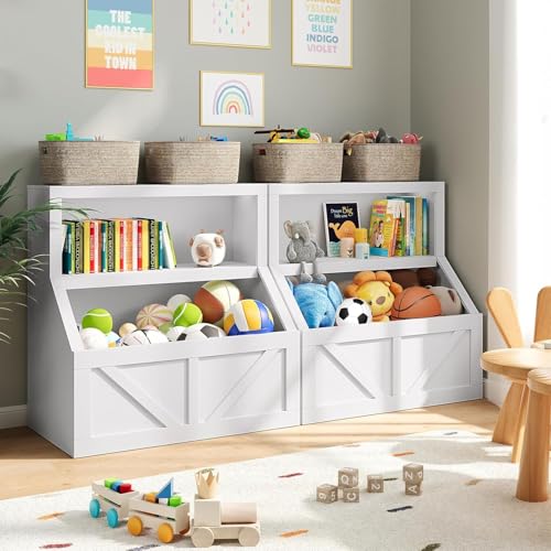 - PERFECT STORAGE CABINET: This 2-tier kids bookshelf and toy storage features 2 large open storage cubbies and a spacious tabletop. Kids' accessible size makes it easy for small children and toddlers to interact, ideal storage organizer to help your kids develop good habits to organize toys and books without help., VERSATILITY: This children's bookcase with toy storage organizer provides versatile storage options, and has a large space for toy storage at the bottom and books at the up layer. The middle cubby and up top provide rich space to display your kid's loved collectibles or place storage bins to make the kid's room tidy and well-organized., FLEXIBILITY: The multifunctional storage, kid-friendly height and size make this toy storage cabinet ideal for a playroom, bedroom, kids' room, nursery, daycare, hallway, living room, classroom, kindergarten, or school. You can place 2 or more units side-by-side to create a storage wall., GREAT QUALITY AND STURDY: This wooden bookshelf with kids toy storage is made of solid and thick engineered wood and high-quality hardware, sturdy and durable. The classic and simple style makes it fit for any home style., EASE OF ASSEMBLY: The attached required tools, hardware, and instructions make this toddler's book toys storage organizer quick and easy to put together. The anti-tipping device is easy to install to ensure children's safety. DIMENSIONS: 31.42 x 16.56 x 32 inches (LxDxH).
