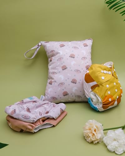 - Fashion&Stylish -Why not get these reusable,washable super-absorbent and comfortable cloth nappies or diapers,which are also called modern cloth nappies (MCNs) or pocket nappies.For your baby,for the cost of buying disposable nappies,these reusable nappies and inserts will last you for a much longer period of time., Comfortable and Soft for skin-Outer layer: polyester with waterproof and breathable TP .It's convenient for mammy to carry baby while taking a walk or doing chores.Moisture-wicking properties Inner layer: The athletic wicking jersey(AWJ) lining helps to wick moisture away from the baby's skin,Breathable,sweaty and cool for summer keeping them dry and comfortable. Cloth diapers with an athletic wicking jersey lining help to reduce unpleasant odors,keeping your baby smelling fresh and clean., Save Money & Eco-friendly-ALVABABY reusable cloth diapers are designed for families who require premium products. Suitable for babies and toddlers 3kg-15kg (6.6 – 33 pounds) (a rough guide for reference only).Length of Diaper: 15” in length X 13” in width. One size fits all– you can adjust the diaper to your desired size (S,M or L) by snapping onto different rows of buttons on the nappy., Multi-functional bag-Approx.:11.5 in x 14.5 in,a truly wonderful bag that allows you to carry your wet and dry items in the same bag. Carry all your items in one bag while keeping your dry items dry and your wet or soiled items separate., Packing list - 6 packs of athletic wicking jersey(AWJ) cloth diapers with 6 pcs inserts and one pack of wet dry bag and one wet dry bag,covers only,the package does not include diaper inserts.Hip snaps and crossover snaps to prevent“wing droop”.Washable,waterproof and breathable.Comfortable elastic legging area to prevent leaking.
