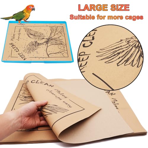 RUENXG 50 PCS Bird Cage Liners - Precut Disposable Absorbent Pads 19.6x15.6in, Thickened Pet Bedding Paper for Parrot/Canary/Budgie Cages, Cage Tray Liner Mat with Sandpaper Texture