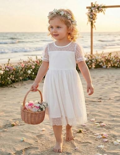 Arshiner Toddler Girl Tulle Dress Summer Puffy Sleeve Baby Girl Party Casual Dresses 5-6 Year White