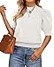 ATHMILE Short Sleeve Sweater for Women 2026 Spring Summer Blouses Crewneck Knit Puff Sleeve Dressy Casual Trendy Shirts, A-white, Large