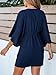 CUPSHE Women's V Neck Summer Dress 3/4 Kimono Sleeve Self Tie Pleated Loose Slit Mini Casual Dress, Navy Blue, X-Small