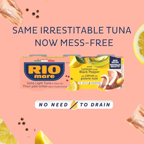 - Product: the unique taste of Rio Mare prime quality tuna in olive oil, combined with black pepper and squeezes of real lemon juice to create a fresh and spicy flavour that will make even the simplest dishes better, High in protein, easy to pack: 3 x 65g cans, Ingredients: skipjack tuna (Euthynnus Katsuwonus pelamis), olive oil, lemon juice 1%, black pepper grains, salt, flavouring, Cooking tip: Delicious on its own or paired with a toasted crostini, Responsible Quality: Rio Mare is committed to sustainable fishing, to the respect of the environmental and of the people