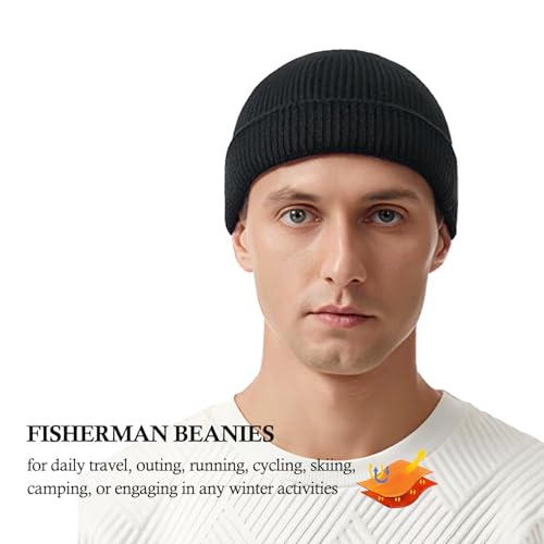 UNNESTAR Trawler Beanie Hat - Short Fisherman Beanies in Cold Weather Stretch Skull Cap Retro and Hip-hop Style Black