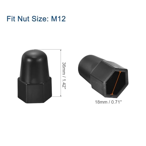 uxcell 50pcs Hex Nut Bolt Cover, M12x18x40 Black Plastic Higher Dome Nut Protection Cap Hex Bolt Nut Covers for Hexagon Screws, Bolts