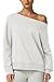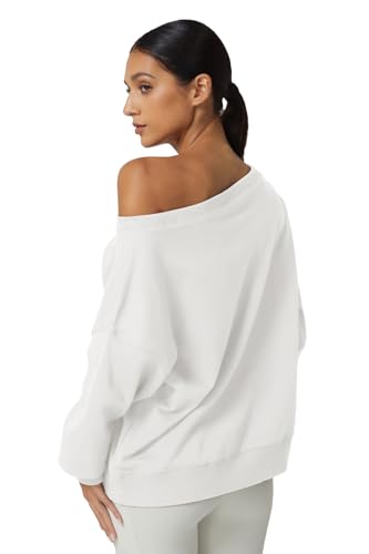 QINSEN Womens Oversized Sweatshirt Long Sleeve Off The Shoulder Pullover Casual Comfy Fall Outfits, White, Small