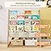 - [Children Can Freely Choose]- The height design of the shelf is suitable for children's height. Children can take their own books, drawings, and books to read, and can easily put them back after reading., [Space-Saving Design]-This bookshelf has 4 wide slots and 3 storage bags, which can hold multiple books and also store toys, increasing storage space and exercising children's storage and organizing abilities., [Durable Design]-The bookcase adopts stronger and wear-resistant Oxford cloth material. And frame structure adopts wood grain iron pipesHolds heavy books without rip apart., [Product Dimensions]-Bookcase measures 27.56" W x 13" D x 30.71" H; bookshelf is easy to assemble, adult assembly required, Perfect for book storage in your toddler’s bedroom, playroom, nursery, or the living room.
