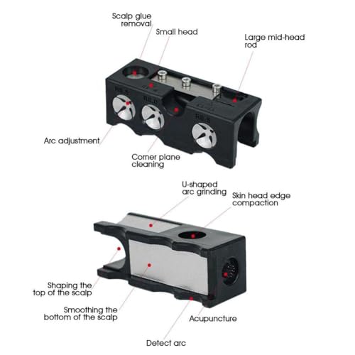 - 11-in-1 Cue Tip Repair Tool: This versatile tool is designed to help you maintain and repair your cue tip with ease, offering multiple functions in one convenient device., Leather Tip Trimmer: The tool features a leather head for trimming and shaping cue tips to ensure a smooth and precise finish for improved performance., Curved Shaft Correcting: With an arc-shaped design, this tool helps correct and reshape bent cue shafts, enhancing the accuracy and consistency of your shots., Easy Tip Replacement: The tool simplifies the process of replacing cue tips, making it a must-have accessory for cue maintenance and repair., Professional Cue Care: Perfect for pool players of all levels, this tool provides professional-grade care for your cue, ensuring optimal performance on the table.