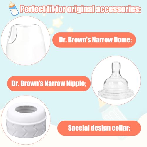 - Product List: Our package includes 4 pieces of bottle nipple collars rings, which is sufficient for your daily use and replacement needs., Compatibility: Our bottle nipple collars rings are compatible with Dr. Brown's bottles, both glass and plastic.Please note that our product is not sponsored or endorsed by, or affiliated with the brands it fits, including Dr. Brown's., Product Material: The bottle nipple collars rings are made of PP material, which is reliable, not easy to break or deform, and can serve you for a long time. Choose good materials and you can use it with confidence., Easy to Clean: The simple design prevents dirt accumulation. It can be washed in the dishwasher after use, saving you time and vigor, allowing you to take care of your baby wholeheartedly., Useful Product: After installation, it can fit as well as the original collar, and it works perfectly with the original accessories to provide a tight seal without leaking or spilling, keeping your baby's formula or breast milk fresh.