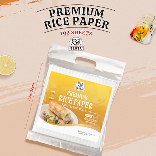 - Triple Pack for Convenience: Get more with 3 packs of 52USA Square Rice Paper, each crafted from carefully selected, all-natural ingredients to meet all your culinary needs., Clean & Natural: Made with 100% natural ingredients, our rice paper is free from additives, artificial colors, GMOs, and gluten. It's also unbleached and vegan-friendly. Clean & Natural: Made with 100% natural ingredients, our rice paper is free from additives, artificial colors, GMOs, and gluten. It's also unbleached and vegan-friendly., Sturdy & Versatile: Designed to hold up without tearing, this rice paper is perfect for wrapping everything from fresh spring rolls to dumplings and other Asian-inspired dishes., Healthy & Wholesome: With no artificial additives, our rice paper is a great choice for those who prioritize clean eating and natural ingredients in their meals., Perfect for Bulk Cooking: Ideal for families or meal prep, this 3-pack ensures you always have high-quality rice paper on hand for your favorite recipes.