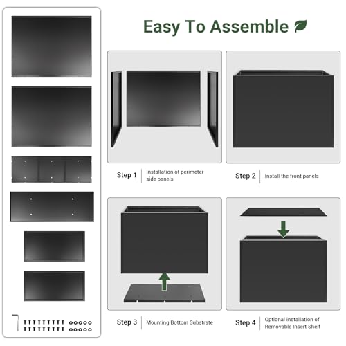 - Heavy and Sturdy: The tall rectangular planter box is 36" x 12" x 26", weigh 43 pounds, made of thick steel with black powder coating, giving the surface a premium metallic texture and making it durable and sturdy (Note: this span planter is assembly required), Removable Insert Shelf: The tall rectangular planter box has a removable insert shelf. You can install the shelf at the middle of the tall rectangular planter for shorter plants or filling in soil, or remove the shelf for tall plants, which can meet the growth needs of different plants, Multiple Drainage Holes: The insert shelf has 4 drainage holes and the bottom of the tall planter boxes has 6 drainage holes, which can prevent excessive water accumulation and cause plant root rot, ensuring the optimal health of the plant, Weather Resistant: This tall planter box has good salt spray resistance, UV resistance, freeze-thaw resistance, adapting to various weather conditions and is suitable for indoor and outdoor use, Wide Application: Modern style large metal planter boxes are suitable for outdoor/indoor decoration, and can be placed in gardens, decks, courtyards, balconies, kitchen windows, entrances, terraces, or front porches. This tall planter can add different aesthetics to the environment by combining different natural and artificial plants