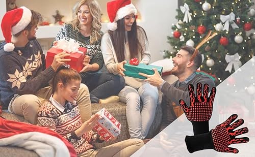 - 【Features】:Our 2025 Upgraded BBQ gloves easy to hang them via the suspension rings,oven mitts Extreme Heat Resistance , Wrist knitting lengthened, effectively prevent scalding, more safe,provide the highest protection for your hands,wrists and forearms, anti-slip, wear-resistant, elastic, fast heat dissipation, double-sided use., 【Material】: New flame retardant fiber/aramide + inner layer cotton + double sided silicone,Excellent heat insulation and heat dissipation., 【Process】: The outer flame retardant fiber can withstand high temperature 800 degrees or 1472 degrees Fahrenheit; The inner layer is made of cotton, soft and breathable, comfortable to wear; Silicone using food grade environmental protection silicone, can directly contact with food, more safe and assured!, 【Design】: Double-sided dispensing The use of anti-high temperature environmental protection silicone, excellent anti-slip performance, beautiful, can be used positive and negative, Easy to clean - once in a while just throw them in the washer and you're good to go,extend the service life., 【Flexibility】: The gloves have a great fit. This allows me the flexibility and full control of tongs,Whether you're in the kitchen, at a BBQ party, cooking, baking, fireplace,camping, or even cutting, these Oven gloves are perfect for any cooking scenario. With their heat resistance, you can handle hot pots, pans, grills, and more with ease.