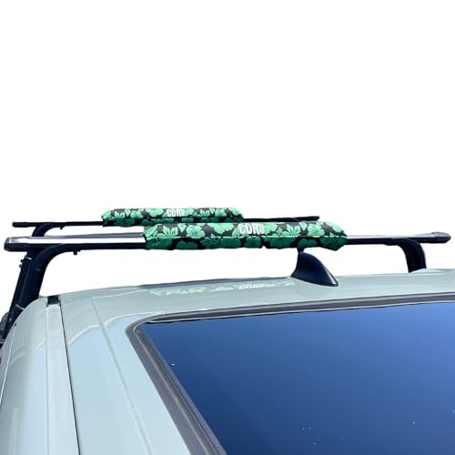 - Keep your cargo secured: COR Surf aero roof rack crossbar pads make getting your surfboard, paddleboard, kayak or canoe effortlessly and quietly while driving out to your spot. Built to last and to handle the elements the COR Surf Roof Rack Aero Pad is a premium pad that will stay on your car for years to come and still look great!, Exceptional Durability and Fade Resistant: Our cross-bar car rack pads have high density foam wrapped in 600D Oxford fabric with fade resistant coating so they won’t fade in the sun. We developed our heavy-duty fabric that's exceptionally durable and waterproof. Premium equipment protection and cushioning is balanced with long-lasting functionality., Easy to Use: our paddleboard roof rack pads come with super strong velcro fastenings for a firm grip and fast, convenient installation. You can be driving at any speed and still be assured that the pads and your gear will still stay in place. Just wrap around your cross-bars are you’re ready to go!, Reduced Noise and Better Gas Mileage: our foam kayak blocks pads only have foam padding on top that come in a pre-formed shape, so it's easy for them to fit snugly around the vehicle crossbar rack. Since they don’t wrap all the way around your crossbars, it reduces wind noise and helps improve your gas mileage., Specifications of the COR Surf Aero Roof Rack Pads: 2 in a set; fit large aero (flat bar) crossbar racks 5.5" - 8.0" (14 - 20cm) bar circumference; suitable for Thule, Yakima, Rhino roof racks