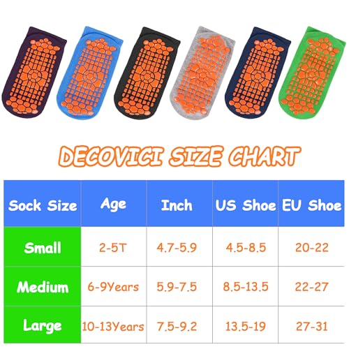 DECOVICI Anti-Skid Trampoline Socks Yoga Ankle Socks with Non Slip Grips 2-13 Years Teenager Train Home 6/12 Pairs, Color2 #6 Pairs, 2-5T