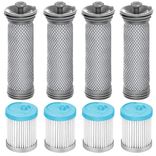 - 【Perfect Compatibility】 Designed to be compatible with Tineco A10/A11 Hero, A10/A11 Master, PURE ONE S11, S12 Pro EX, PWRHERO11 Snap cordless vacuums. Ensures optimal performance for models like A10 Dash and X Series. Confirm your vacuum model before purchasing to guarantee a perfect fit., 【High-Value 8-Pack Filter Kit】 This comprehensive kit includes 4 pre-filters and 4 HEPA post-filters, offering maximum efficiency and durability. Regularly replacing your filters will protect your machine and improve cleaning performance. Ideal for year-round use., 【Premium Filtration Efficiency】 The pre-filters use a multi-layer filtration system to trap dust, allergens, and fine particles, while the HEPA post-filters ensure clean and healthy air. This helps your vacuum maintain peak suction power, optimizing cleaning and air quality in your home., 【Washable & Reusable Filters】 Both pre and post filters are washable and reusable. Simply rinse under warm water and air dry completely before reinstalling. It is recommended to replace the pre-filters every 3-4 months and the HEPA filters every 6 months to ensure optimal vacuum performance., 【Quality Assurance & Support】 We are committed to providing high-quality vacuum replacement parts. Enjoy peace of mind with our worry-free customer service. If you have any questions or concerns, our team is here to assist you 24/7.