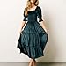 Womens 2024 Fall Winter Velvet Dress Puff Sleeve Square Neck Smocked Tiered Ruffle A-Line Flowy Long Maxi Dress Green