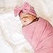 BQUBO Newborn Receiving Blanket Toddler Warm for Girls with Bow Hat and Bow Headband Shower Gift