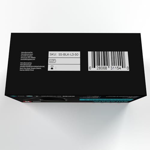 SureSafe 50 PCS ASTM Level-3 Masks Disposable, Black face mask, Medical mask, Disposable Masks with Earloops, dust mask