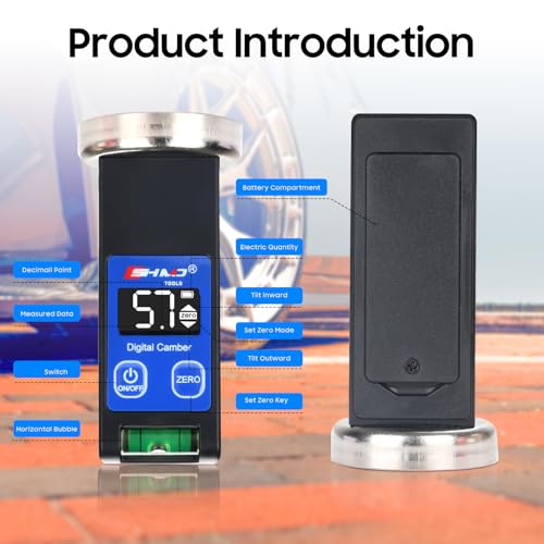 - Professional Caster Camber Gauge: This camber alignment tool is perfect for measuring the camber and caster angles on wheels or brake discs. Ideal for automotive alignment tasks, it ensures accurate adjustments after suspension work. This tool will help reduce tire wear and improve vehicle handling, keeping your car, truck, or motorcycle running smoothly., Wide Range Measurement & Digital Display: The BINGOX camber gauge offers a wide angle measurement range from -90° to +90°, with easy-to-read digital readings. Whether you’re working in a garage or at home, you can quickly and precisely adjust camber and caster angles, perfect for DIY wheel alignment kits. The built-in backlight makes it suitable for use in dimly lit environments., Magnetic Base & Positioning Bubble for Enhanced Accuracy: Featuring a strong magnetic base, this alignment tool attaches securely to various metal surfaces, such as brake discs. The bubble positioning ensures precise camber measurements for accurate wheel fitment and alignment. Its compact design ensures stability, even when used on smaller surfaces., Zero Reset & Data Hold Function: With a simple press of the "ZERO" button, you can easily reset the gauge, ensuring that your camber and caster alignment readings are always accurate. The data hold function allows you to lock in your most recent measurement, making it easier to track and fine-tune your adjustments., Durable & Drop-Resistant Design: Made from high-density aluminum, the BINGOX camber tool is wear-resistant and built to last. It’s a reliable wheel alignment and balancing tool for both professional mechanics and DIY enthusiasts, ensuring long-term durability and precision in your garage.
