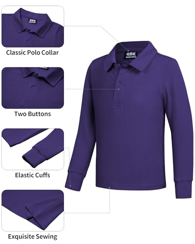 QBK Toddler to Youth Boys' School Uniform Pique Polo Shirts Kids Long Sleeve Collared Golf Shirt, Purple, 8 Years